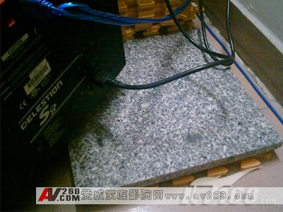 现在普遍的发烧友的做法都是给低音炮垫上4CM以上厚度的花岗岩板,因为花岗岩板的质量惯性能吸收低音炮的部分震动能量,再在花岗岩板与地板之间再垫上柔性缓冲层如橡胶\地毯等,这样就能避免低音炮与地板直接耦合,能有效隔绝低音传递到楼下,就会大大减少对楼下住户的影响。同时,低音炮垫上花岗岩板对音质的提高有帮助。其中减震橡胶块,绝缘材料店有售,每件4元,或者可以在花岗岩板下面垫儿童拼图用的海绵垫,而且最好选没拼图的垫,才5角一块!便宜而效果不错!